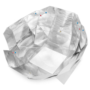 This is the popular Haines 2 Solar Cooker without a cooking pot.  It includes the polycarbonate circular cover and cooking sleeve with silicone spacers to protect the cooking sleeve.  You will need to supply your own black or dark colored pot with lid.  The pot must have a top flange, no wider than the diameter of the pot, that can rest on top of the cooking sleeve.  It must not have side handles that would interfere with the cooking sleeve.  The lid must be tight-fitting and preferable made of glass so that the cooking process can be observed without removing the lid.